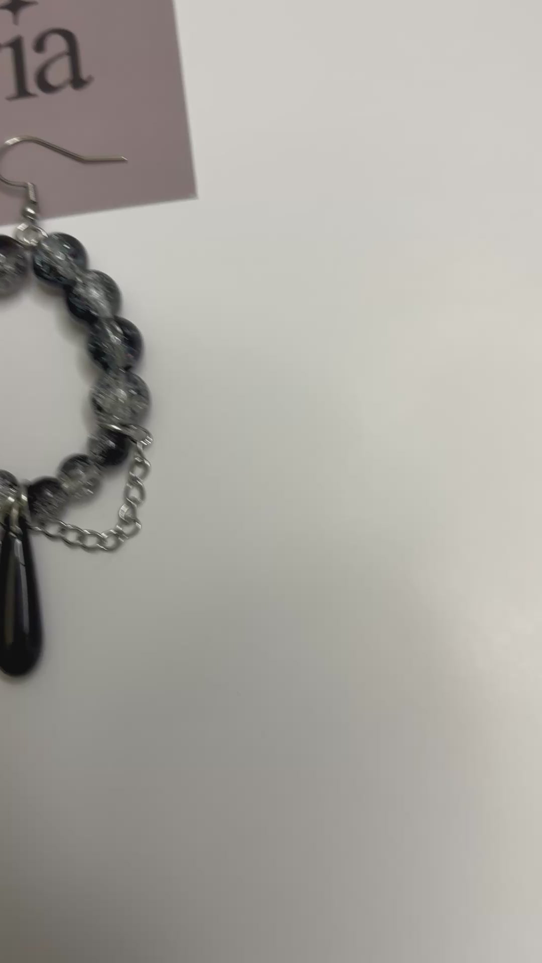 Die Silver Tear Earrings sind zart, glänzend und leicht mystisch. Die schwarzen Tropfenelemente bringen eine sanfte Eleganz, während die schwarzen Crackle-Perlen den Dark Cute Touch setzen.